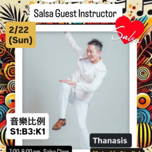 本周日2/22特別邀請客座Salsa 老師,騷莎迷SalsaMe的創辦老師,Thanasis,將為大家帶來1小時的Salsa舞蹈教學! 3.5小時舞會+1小時Salsa教學只要💲300❗️ 快揪想學Salsa的朋友一起來體驗或是想更進步的舞者來讓你的舞技更精湛吧‼️