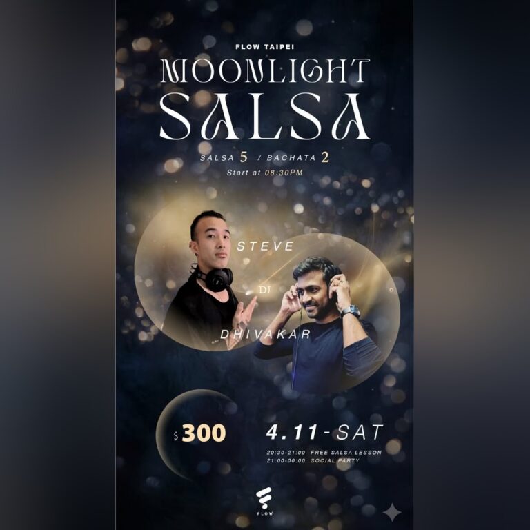 8:30-9:00 Salsa Shine 體驗 9:00-00:00 Salsa+Bachata Socia […]